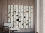 Urban Climb Vertical is a modular Italian shelving system featuring staggered vertical storage, ultra-thin paneling, and diverse finish options.