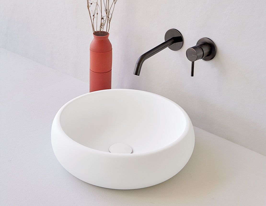 Lucena redefines the round basin through a pure, columnar interpretation. With its upright cylindrical profile, it meets the countertop with architectural clarity—eschewing the softened bowl-like shapes of traditional round vessels.
